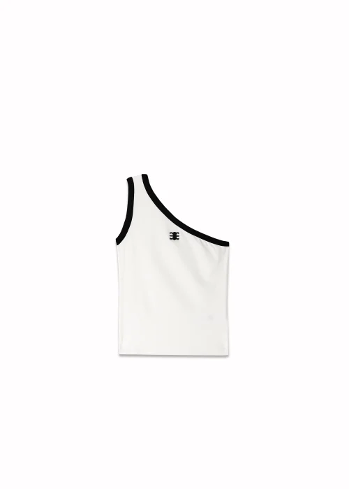 Áo Lệch Vai Viền Tương Phản Thêu Mono