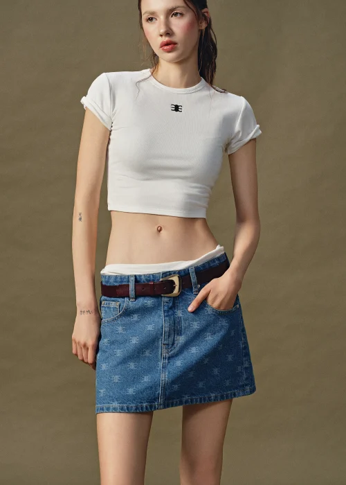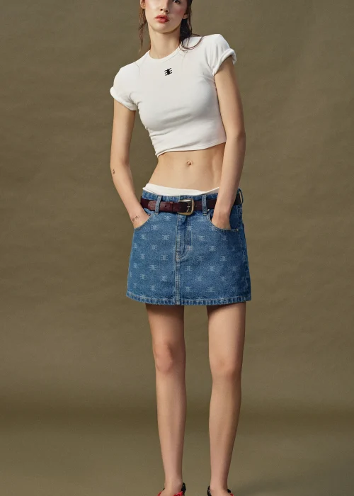 Chân Váy Denim Mini Hoạ Tiết Monogram