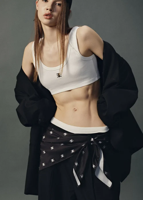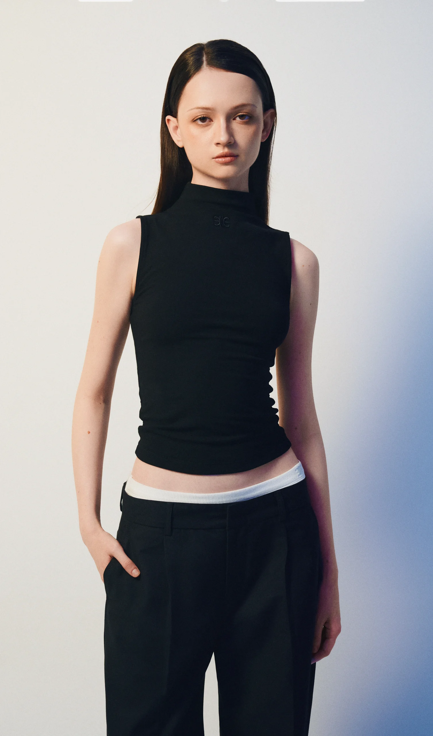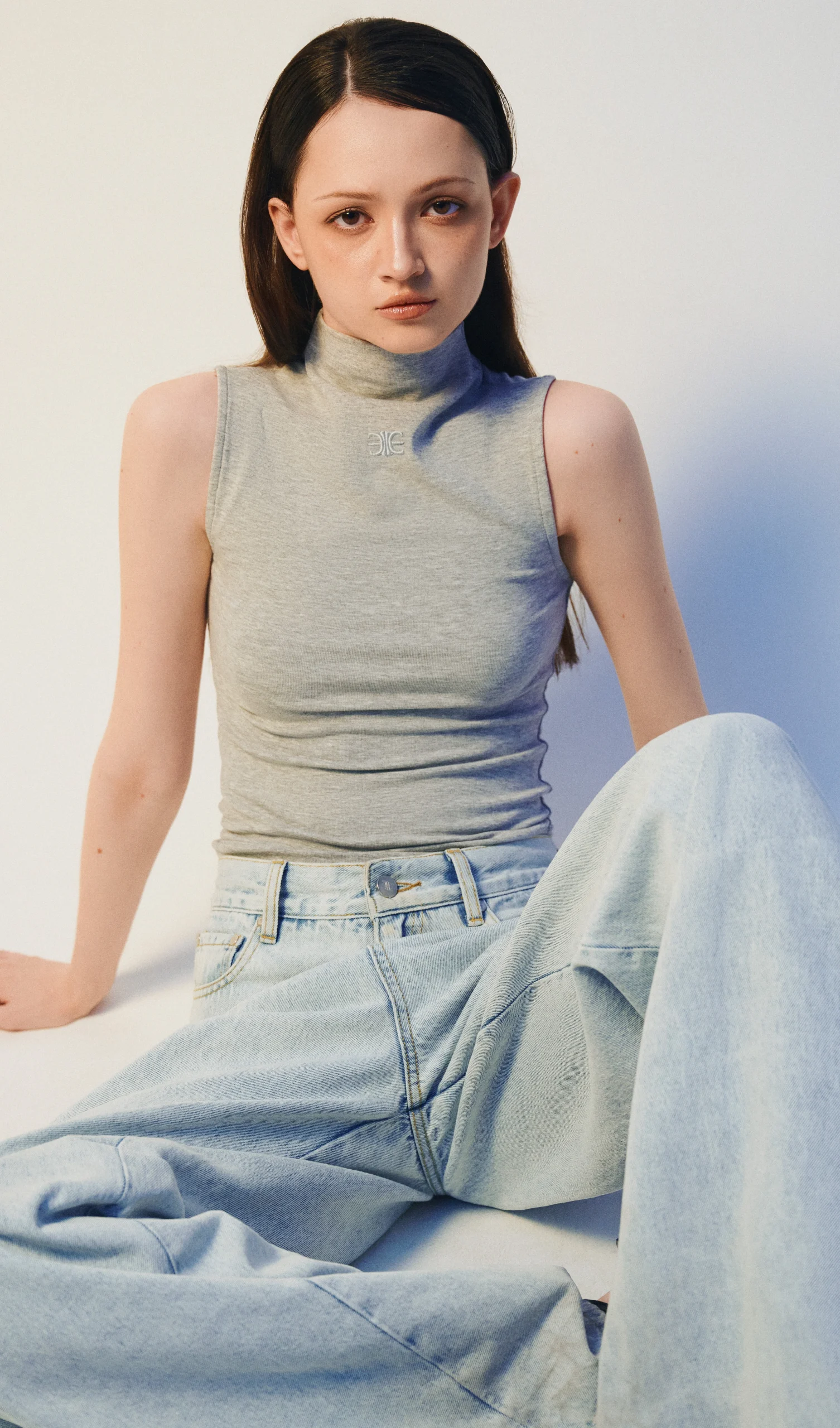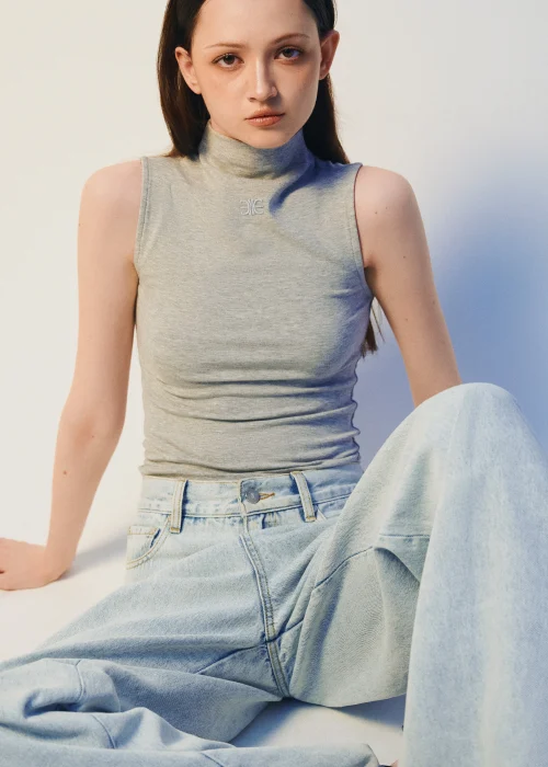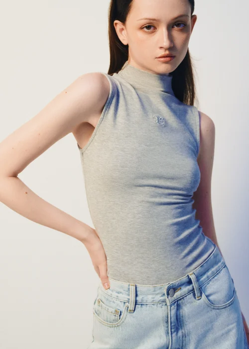 Áo Cổ Cao Không Tay Thêu Mono