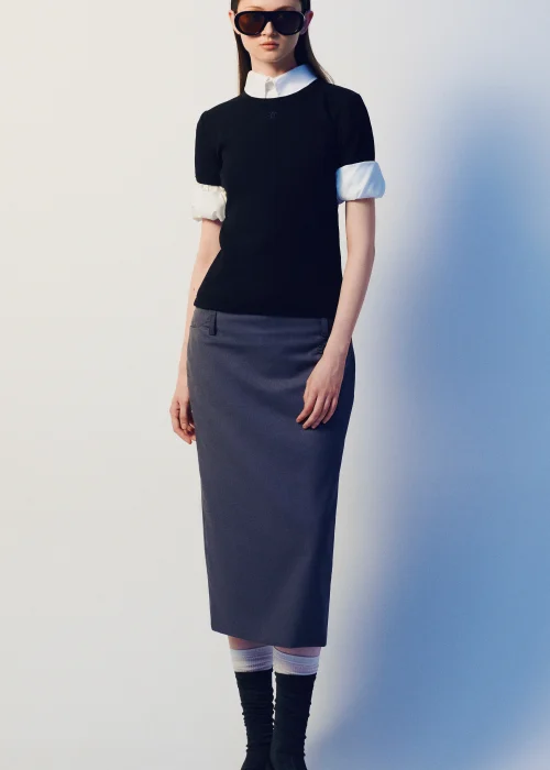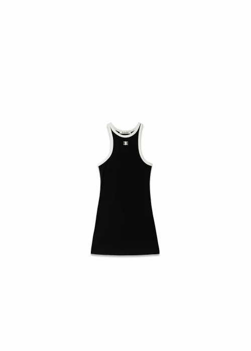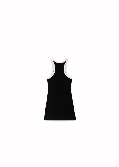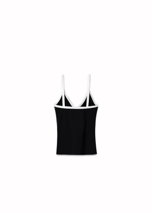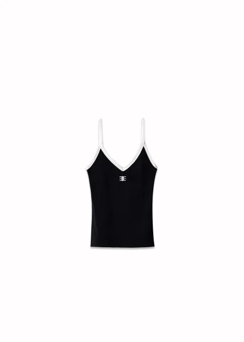 Áo Hai Dây Cổ Tim Viền Tương Phản Thêu Mono