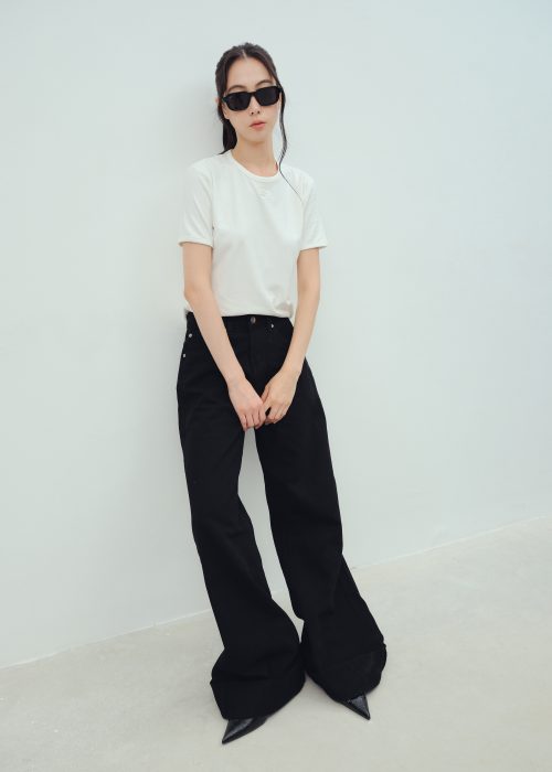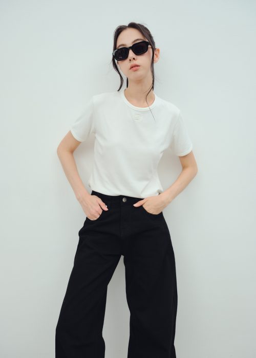 Áo Lệch Vai Viền Tương Phản Thêu Mono