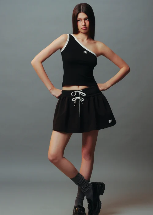 Áo Lệch Vai Viền Tương Phản Thêu Mono