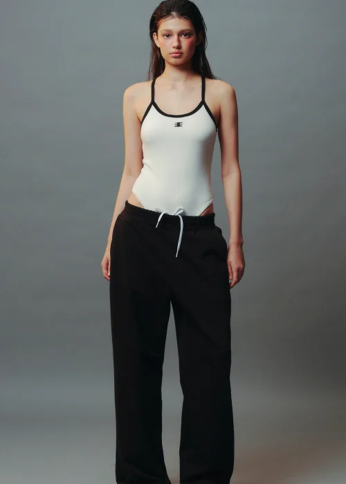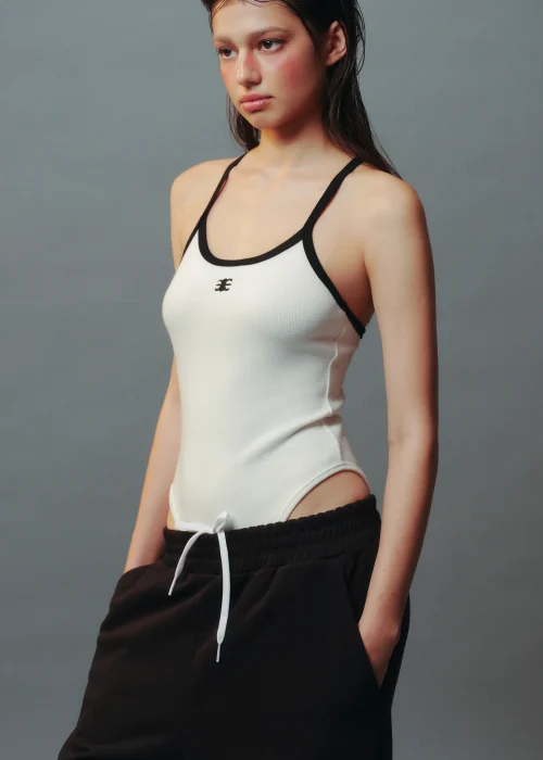 Bodysuit Thun Gân Viền Tương Phản Thêu Mono